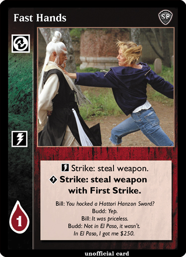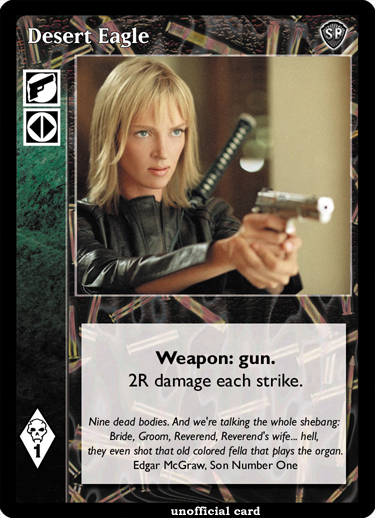 Bill - Budd | Elle - Kenji | O-Ren - Vernita | Johnny - Quentin | Bastard Sword - Day Operation | Desert Eagle - Freak Drive | A Hattori Hanzo Sword - Pursuit | Rolling with the Punches - Temptation